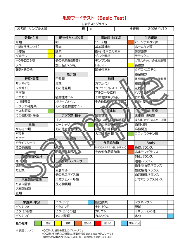 - 本テストは、医療行為、医療機関の検査(アレルギー検査等)ではありません。