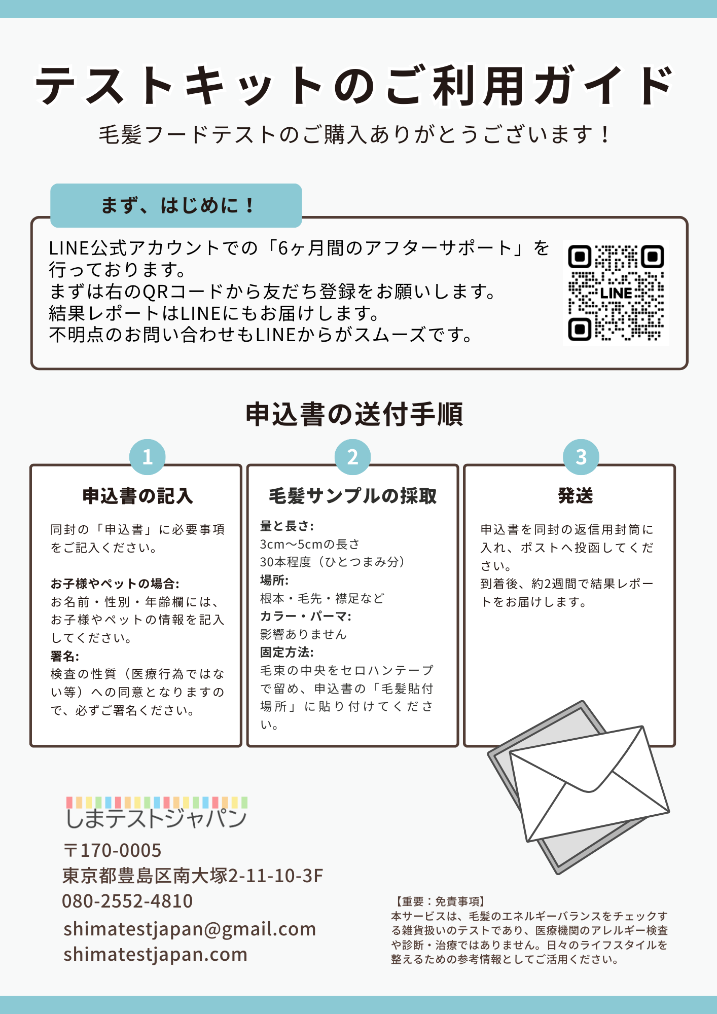 しまテストジャパンから、2つのメールとテストキットが届きます